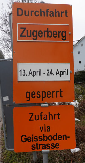 Am 17. April schrieb ich an die Gemeindeverwaltung ein E-Mail unter anderem wegen dem Hindernisses (Verkehrsinsel) an der Zugerbergstrasse.
