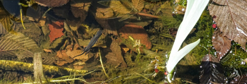 Ein Molch geniesst sein Leben in unserem Teich.