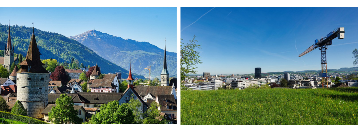 Die wunderschöne Altstadt von Zug links und rechts das andere Zug